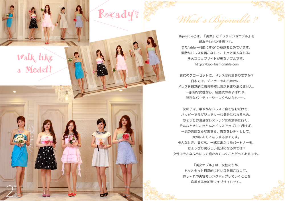 | 美女ナブルに出演していただいた後は、ファッションショーへの出演や、ドレスショップ『COLOR DRESS』のカタログやマガジン、ショッピングサイトで、モデルとして継続的に登場いただくチャンスがあります。